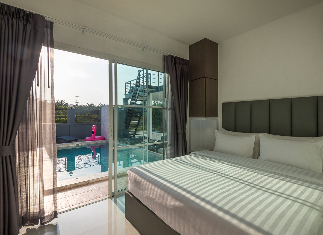 A privacy and peace in our magnificent 200 and 400 square meters, features with the full facilities for an affordable relaxing getaway in Krabi. The interior tastefully comprises 1 & 3 bedrooms which is suitable for 2 and 6 but can also accommodate up to 9 peoples with additional charge, private en-suite bathrooms, a living and dining area with Europe style kitchen in the same open space, and special relaxing roof top terrace for 3-bedroom pool villa. The villa is a perfect choice for family, friends or couples traveling together.
