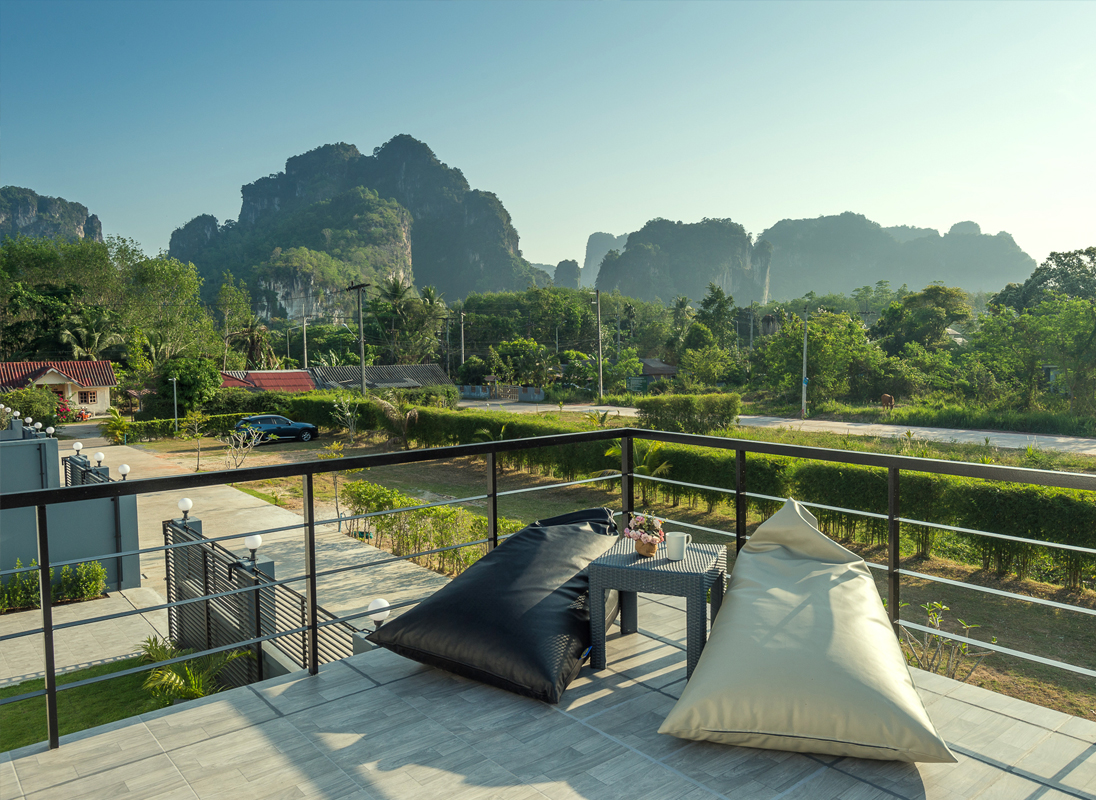 Everyday Nature Living at Lark Pool Villa Krabi, the private pool villa in Krabi, features a roof top terrace for maximizing your relaxing time. Enjoy the unobstructed views of the stunning panoramic limestone mountains and the surrounding nature.