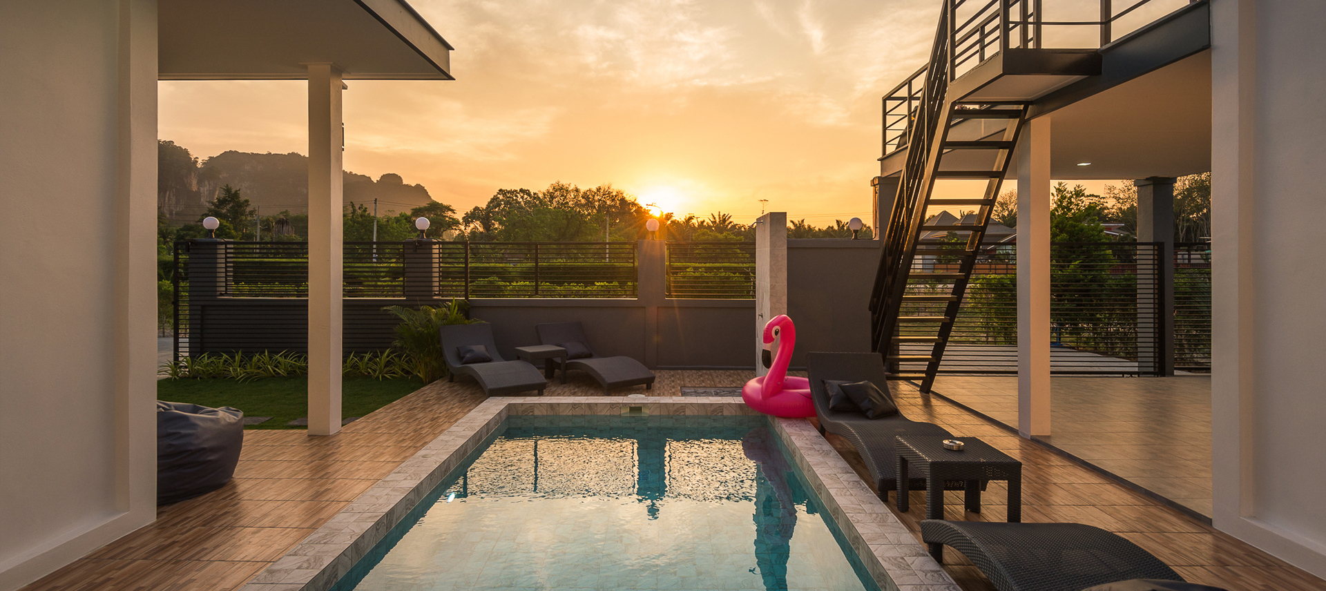 A privacy and peace in our magnificent 200 and 400 square meters, features with the full facilities for an affordable relaxing getaway in Krabi. The interior tastefully comprises 1 & 3 bedrooms which is suitable for 2 and 6 but can also accommodate up to 9 peoples with additional charge, private en-suite bathrooms, a living and dining area with Europe style kitchen in the same open space, and special relaxing roof top terrace for 3-bedroom pool villa. The villa is a perfect choice for family, friends or couples traveling together.